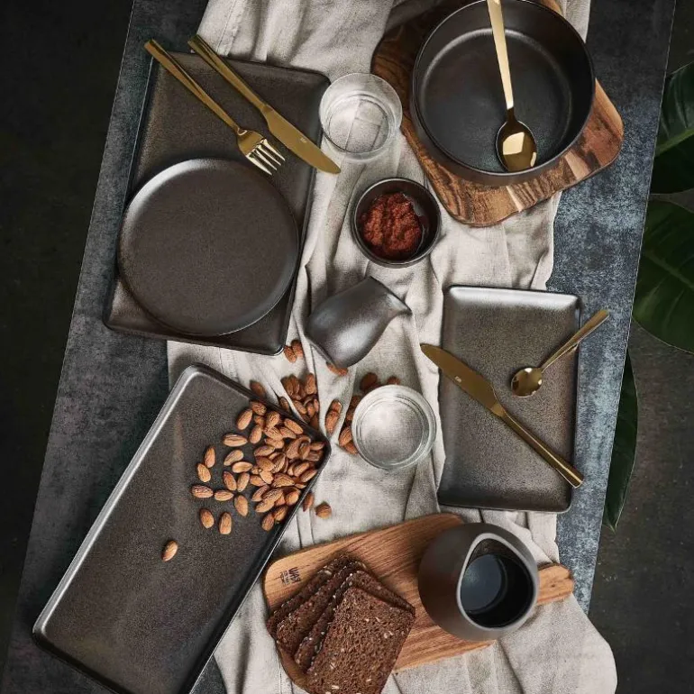 Raw er en serie med moderne stengods-produkter med et snev av 70-tallets nostalgi. Her kombineres det rå og naturlige utseendet med en enkel og elegant design i nøytrale nordiske nyanser. Metallic brown har en nydelig brunfarge inspirert av havets dyp. Produktene består av dobbeltbrendt stentøy i høyeste kvalitet og er håndlaget. Dette resulterer i at hvert produkt er unikt. Det har en rissefri glasur og tåler både ovn, frost, mikroovn og oppvaskmaskin så lenge visse forholdsregler følges (temperatursjokk. Tåler ikke å gå direkte fra fryser til ovn og omvendt).