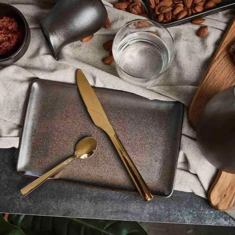 Metallic brown rektangulær tallerken 23,5 x 15,6 cm.