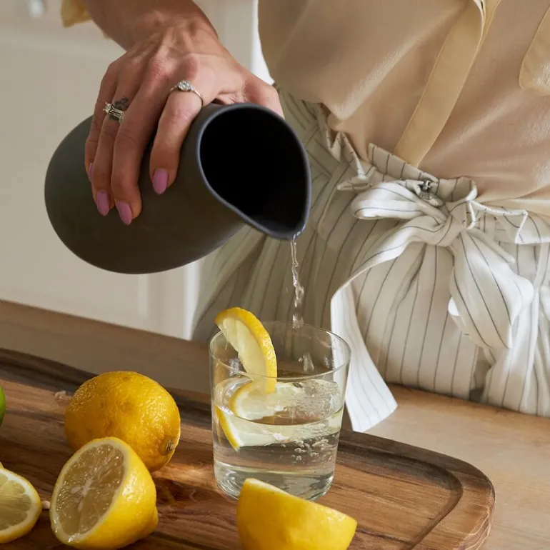 RAW Nordic Unglazed kanne 1,2 L, fra Aida. Style bordet ditt mer rått – kan vi presentere Nordic Uglased – Gjennomfarget, matt, rå og unike produkter. Leiren har til nå spilt en bærende rolle i våre RAW-rammer, men nå blir den hovedattraksjonen. I denne lille serien med vakkert steintøy kan du style RAW-bordet ditt enda råere med sitt fine helt matte ytre og praktiske interiør med den sorte fargen.