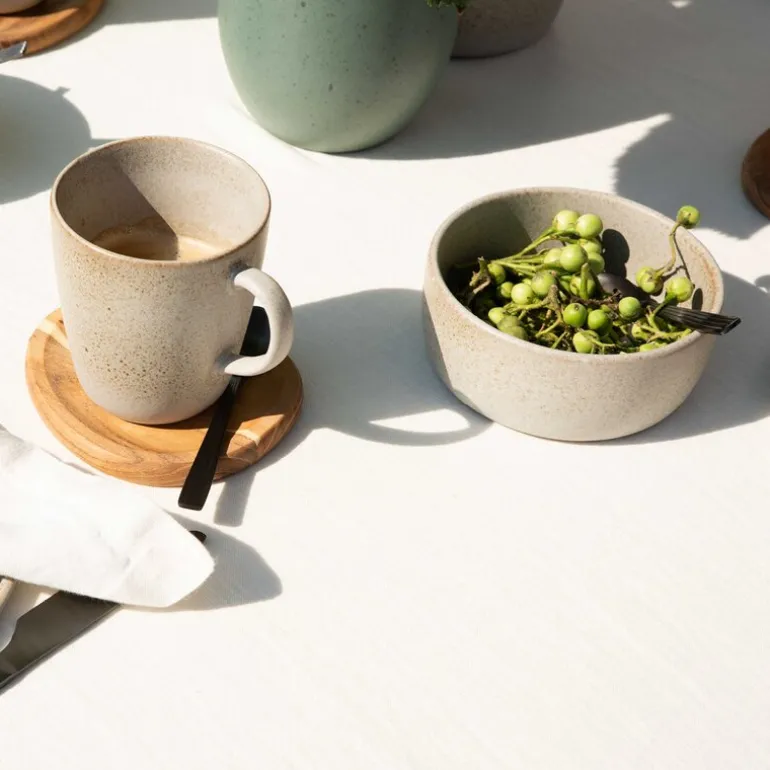 Sandy Beige-fargen bringer en varm, jordnær tone inspirert av nordiske kystlandskap med små, nesten gnistrende prikker – en perfekt farge for et stilfullt, moderne bord.