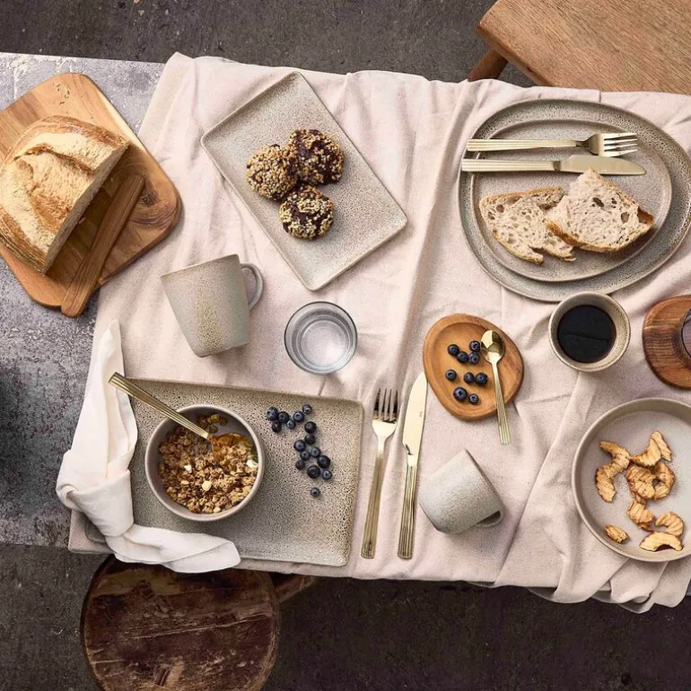 Den varme beige tonen er inspirert av naturlige nordiske sanddyner og fremheves av små glitrende prikker i glasuren som gir en diskret, men sofistikert effekt. Med riktig vedlikehold kan tallerkenen trygt brukes i ovn, mikrobølgeovn, fryser og oppvaskmaskin.