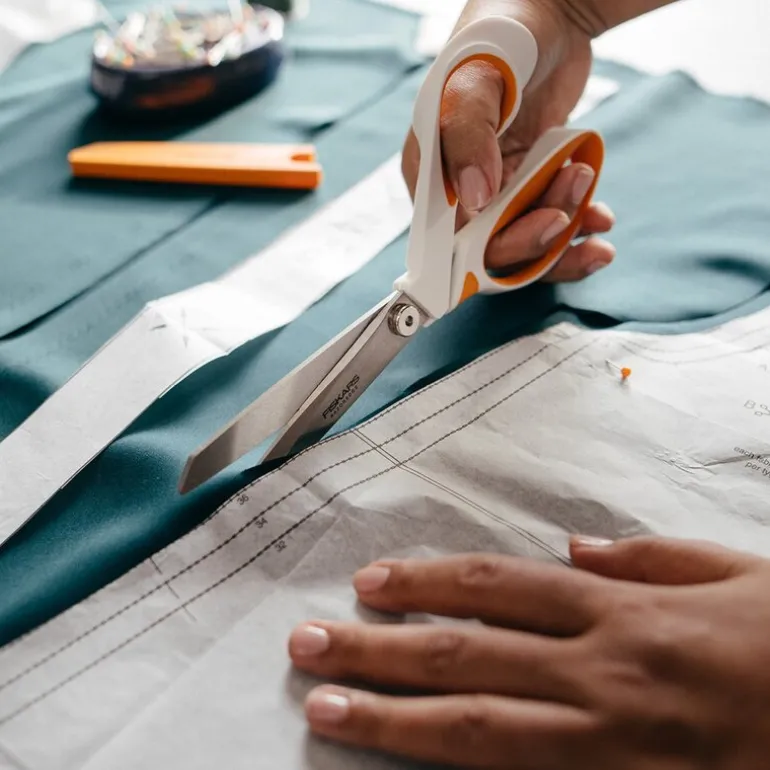 RazorEdge stoffsaks softgrip 23 cm oransje/hvit fra Fiskars er en saks som gir presise kutt i ulike stoffmaterialer. Denne saksen kombinerer avansert teknologi og ergonomisk design for å gi deg nøyaktige og lange kutt gjennom materialer som silke, bomull, polyester og filt. Bladene i rustfritt stål er ekstra skarpe og kutter helt ut til spissen, noe som sikrer et perfekt resultat hver gang. Det ergonomisk utformede Softgrip™-håndtaket gir deg et komfortabelt grep og god kontroll, noe som gjør den ideell for både korte og lange klippeøkter.
