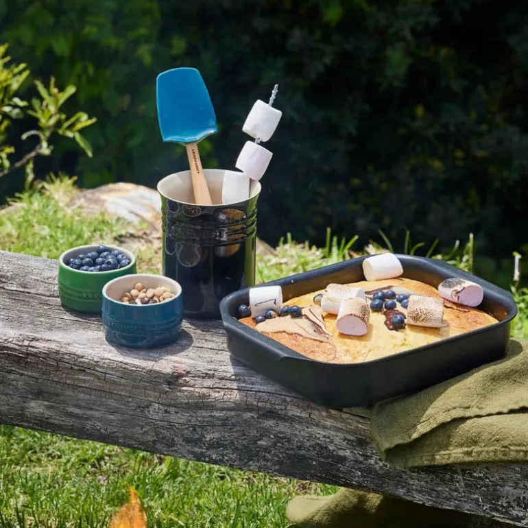 En bestikk- og redskapskrukke fra Le Creusets som er fremstilt i stentøy i alle de velkjente Le Creuset-fargene. Bestikk- og redskapskrukken er ideell til oppbevaring av kjøkkenredskaper som visper, mattenger, stekespader, gryteskjeer osv., og kan samtidig fungere som et dekorativt og fargerikt element på kjøkken- eller spisebordet, alternativt med bestikk eller friske krydderurter.