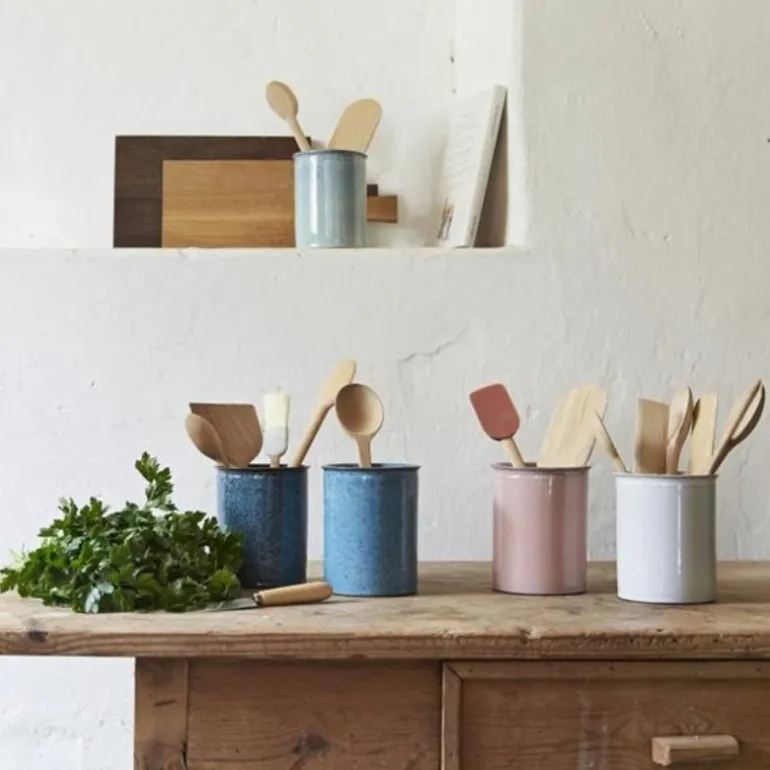 Redskapsoppbevaringen fra Knabstrup Keramik er en stilig måte å oppbevare skjeer, deigskrapere og annet kjøkkenutstyr. I mange år har Knabstrup skapt hverdagsluksus for kjøkkenet, og med inspirasjon fra syltekrukken fra 1914 har Knabstrup Keramik designet en redskapsoppbevaring som er både praktisk i hverdagen og vakker å se på. Redskapsoppbevaring er produsert i sterkt brent terrakotta med reaktive glasurer, noe som gir et unikt og spesielt uttrykk i hvert enkelt produkt.