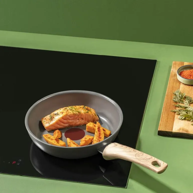 (RE)NEW er perfekt for å lage ferske og sunne måltider, selv med minimal bruk av fett eller olje. Dens kompatibilitet med alle kokeplater, inkludert induksjon, gjør den til et allsidig valg for ethvert kjøkken. I tillegg er den utstyrt med den smarte Thermo-Signal™ temperaturindikatoren som skifter farge når pannen er klar til matlaging, noe som gjør det enkelt å få perfekte resultater hver gang.
