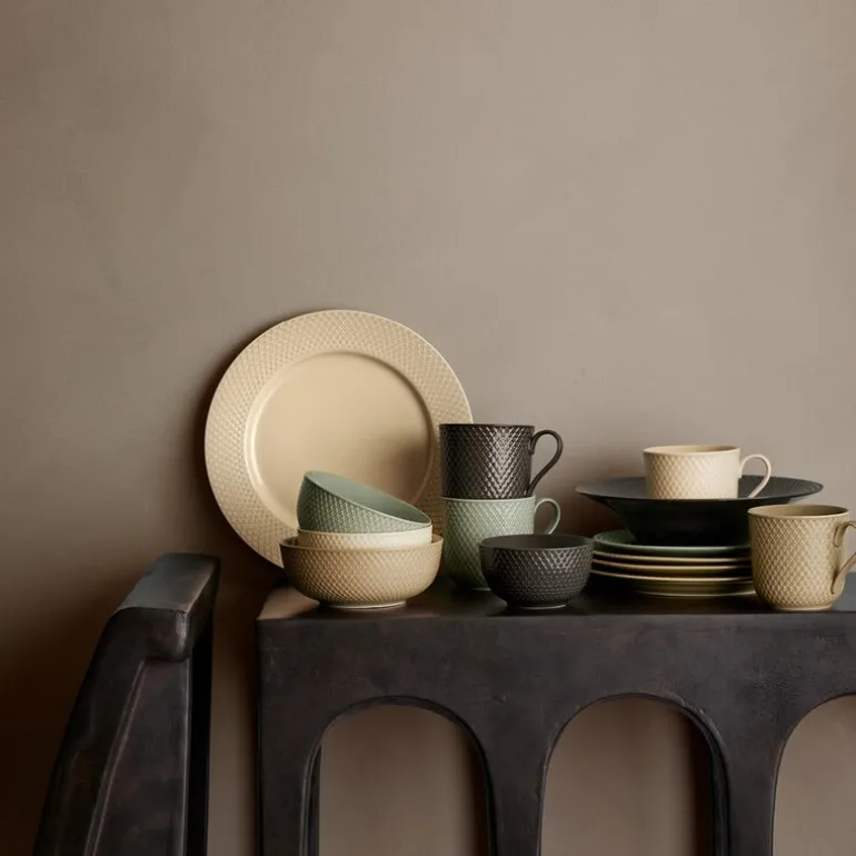 Alle de fire vakre fargene i Rhombe Earth-serien er, akkurat som i Lyngby Porcelæns populære Rhombe Color-serie, nøye utvalgt av designduoen Stilleben, som består av Ditte Reckweg og Jelena Schou Nordentoft. Bruk alle de forskjellige Rhombe Earth-delene sammen i borddekkingen, og la tallerkenene i ulike størrelser titte frem under hverandre, slik at de varme fargene får lov til å snakke sammen. Tallerkenene, krusene og skålene i Rhombe Earth er selvfølgelig også både sammen og hver for seg naturlige supplement til din Rhombe Color-samling eller i kombinasjon med det klassiske hvite Rhombe-serviset, der de grå og brune nyansene på de enkelte Rhombe Earth-delene sammen med Lyngby Porcelæns linjer til perfeksjon vil skape et både moderne og avslappet uttrykk og stå vakkert mot det hvite porselenet.
