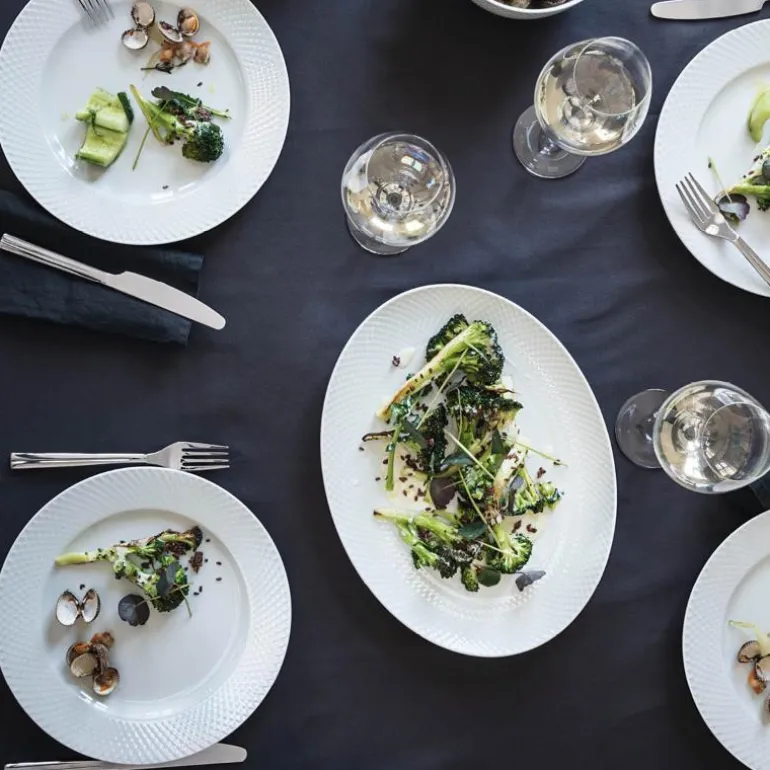 The beautiful Rhombe Serving Dish from Lyngby Porcelain measures 32 x 24 cm. It has a nice oval shape and is manufactured from handmade white porcelain with the characteristic Rhombe pattern, also found on various other items of porcelain in the same range. The pattern was originally taken from the design archives of Lyngby Porcelain, and was first used on the products in the popular 1961 Danild range. Now, the pattern is back, and the classic lines ensure a beautiful, simple table setting with a touch of luxury. The Serving Dish can be used for hot or cold dishes, and for everyday use or special occasions to make your table setting and serving a bit special.