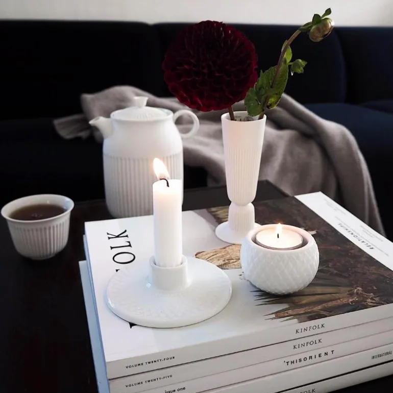 Spre hygge med disse elegante Rhombe lysestaker i håndlaget porselen. Stakene bærer det klassiske Rhombe mønsteret som relieff. Det ble første gang brukt på Lyngby Porselens egen Danild serie tilbake i 1961. mønsteret er funnet i gamle design arkiv hos Lyngby porselen. det utgjør et helt spesielt elegant uttrykk og en klassisk stil.Rhombe lysestake har 2 års bruddgaranti.