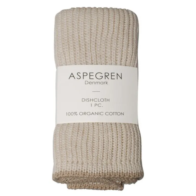 Ripple kjøkkenklut strikket 26×26 cm birch, fra Aspegren. Forvandle din daglige husholdningsrutine med vår strikkede Ripple oppvaskklut, en perfekt kombinasjon av stil og funksjonalitet. Laget av 100 % organisk bomull, forener denne oppvaskkluten skandinavisk designfinesse med håndverk, designet i Danmark og omhyggelig produsert i India. Legg til et snev av eleganse til dine daglige gjøremål og si farvel til det vanlige kjøkkenet. Omfavn en grønnere og mer stilfull måte å håndtere kjøkkenoppgavene dine på med denne oppvaskkluten, og løft kjøkkenopplevelsen din til nye høyder.
