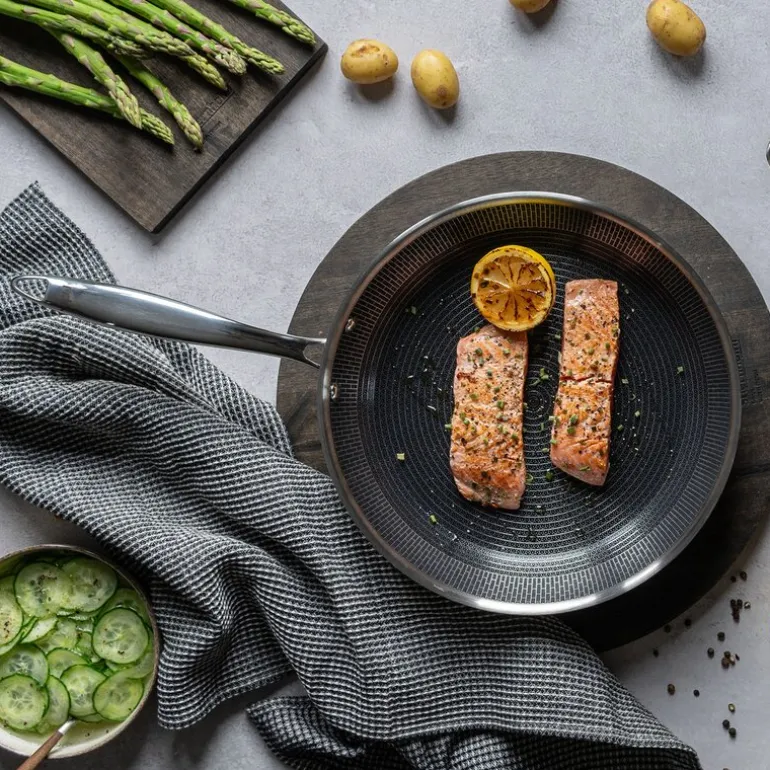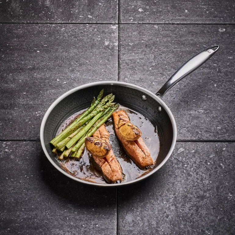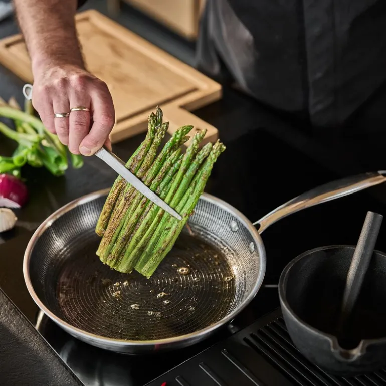 Med en slitesterk overflate tåler pannen intensiv bruk, høye temperaturer og alle typer redskaper, inkludert stål. Den solide 7,5 mm sandwichbunnen gjør at pannen holder stabil temperatur uansett koketopp, og den kan brukes i stekeovn opp til 260°C. Varmeisolerende håndtak gir trygg og komfortabel håndtering.