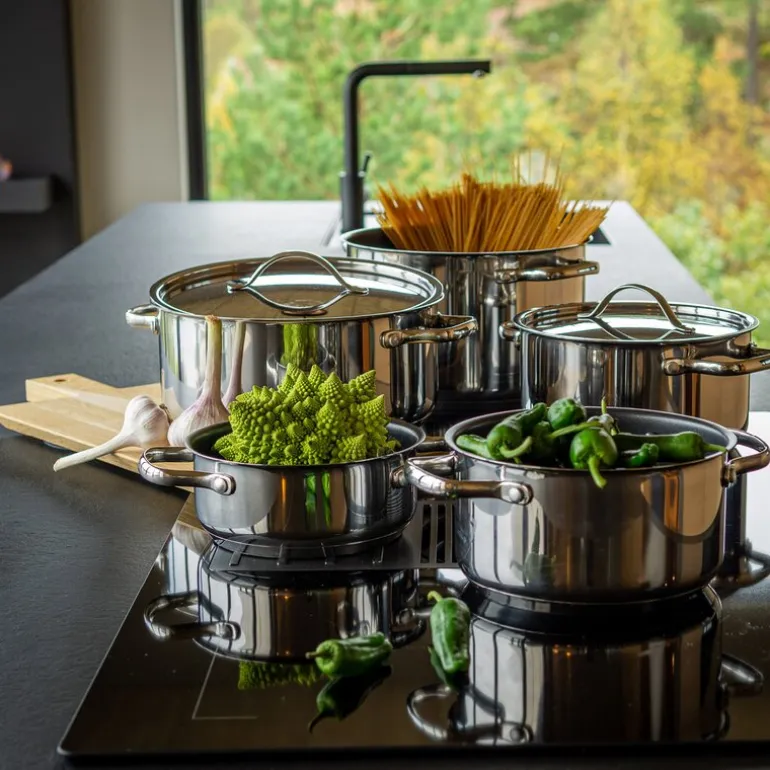 Med en induksjonsbunn på 5,3 mm, som inneholder en 4 mm aluminiumskjerne belagt med stål, sørger Rix gryten for optimal varmeledning. Dette sikrer rask oppvarming og jevn varmefordeling, noe som sparer energi og gir en mer effektiv matlagingsprosess. Grytens vegger på 0,8 mm bidrar til grytenes lette vekt uten å ofre styrke eller holdbarhet.