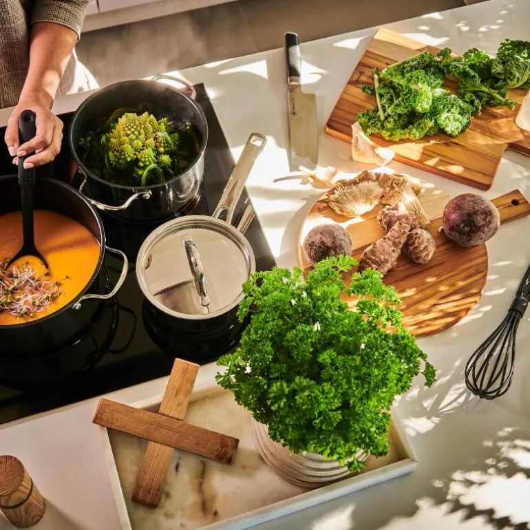 Produsert i 18/8 stål med børstet stålhåndtak og silikon munnstykke. Rengjøres i oppvaskmaskin og inngår i den store redskapserien Rix. Lengde 36 cm