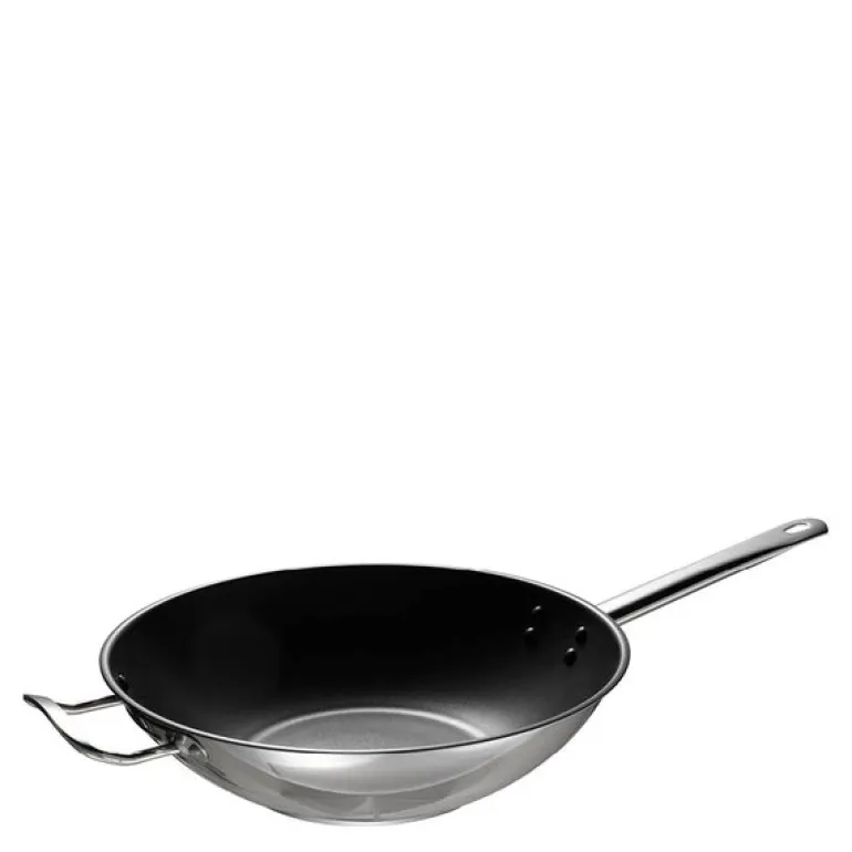 Rix wokpanne fra Modern House på 31,5 cm og 3,5 liter er en gjennomtenkt og allsidig panne, laget for å gjøre matlagingen både enkel og effektiv. Med en størrelse på 31,5 cm og en kapasitet på 3,5 liter, er denne wokpannen en ideell partner på kjøkkenet, enten du lager raske hverdagsretter eller mer avanserte måltider. Pannen er produsert i 18/8 kvalitetstål og har en blankpolert overflate som både gir et moderne uttrykk og enkel rengjøring. Takket være et keramisk slipp-lett belegg unngår du at mat fester seg, slik at resultatet blir jevnt og stekingen komfortabel.