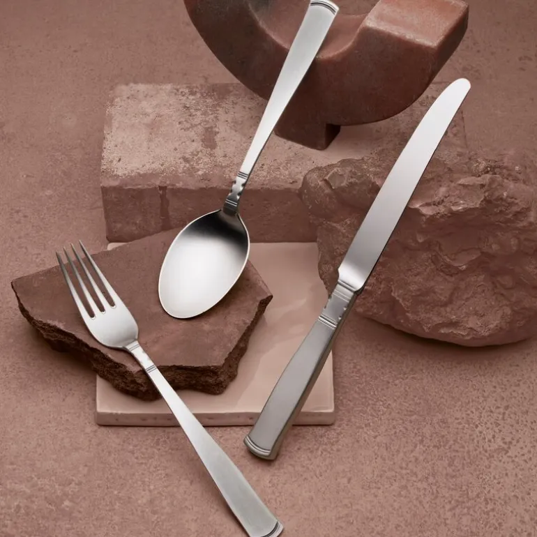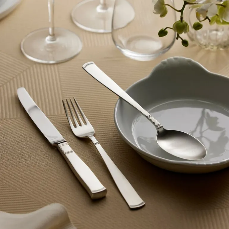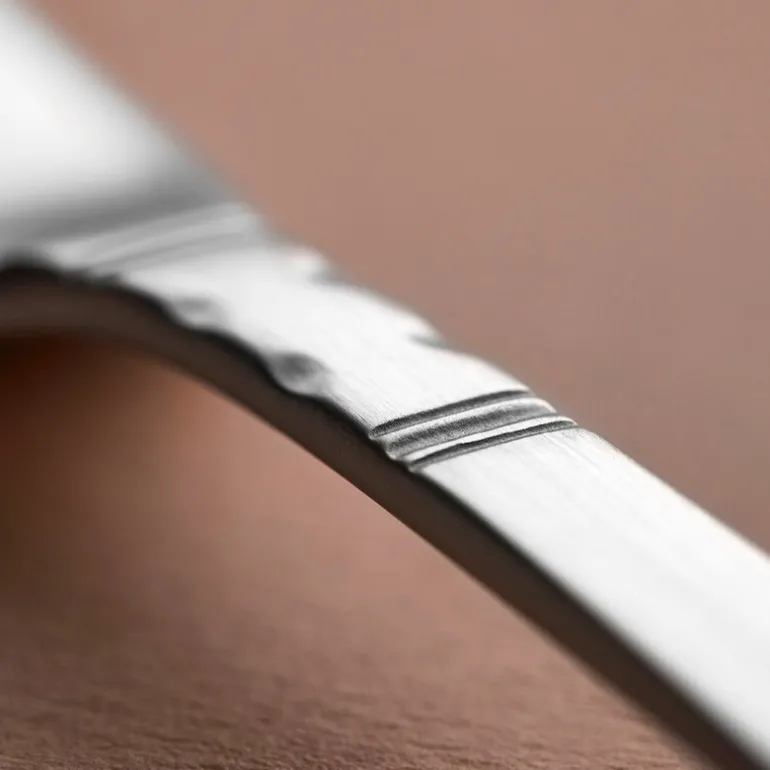 Rosenholm gaffel 19,4 cm 830 fra Gense. Rosenholm har en elegant form med små, uttrykksfulle detaljer. Sølvet er vakkert mattpolert, noe som gir bestikket et moderne uttrykk. Rosenholm ble skapt av Jacob Ängman tidlig på 1930-tallet og er i bredt utstrekning inspirert av funksjonalismens enklere formspråk.