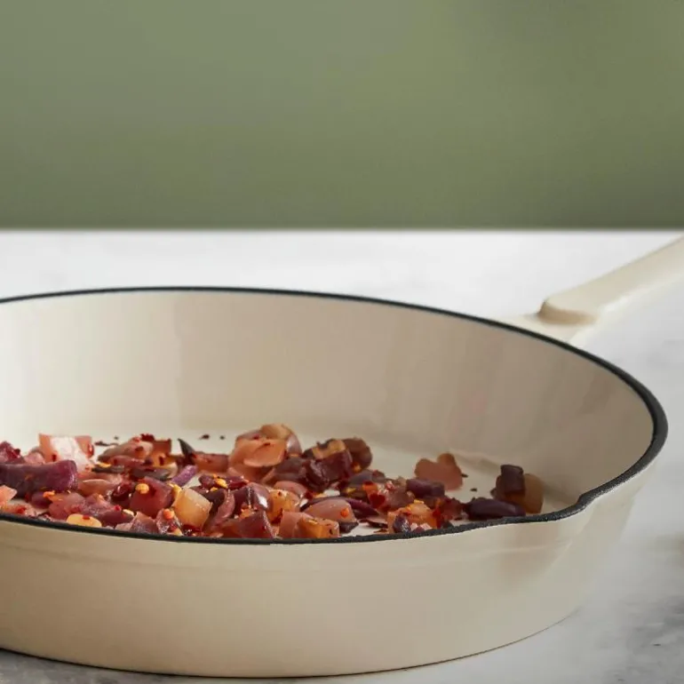 Barbary & Oak presenterer en førsteklasses støpejernspanne på 26 cm med en kapasitet på 1 liter, spesielt designet for å gi optimale matlagingsresultater ved effektiv varmebevaring. Den emaljerte overflaten gjør pannen enkel å rengjøre, hindrer at maten setter seg fast, og beskytter mot uønsket opptak av aromaer og smaker – et ideelt valg for allsidig matlaging.