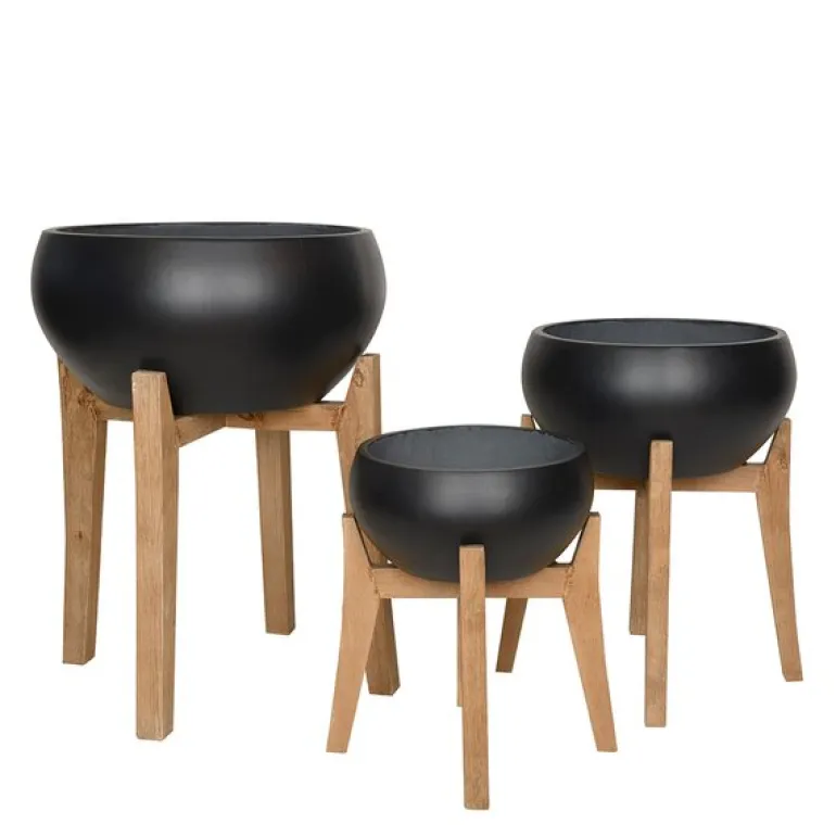 Dette settet med tre blomsterpotter fra Rustik-serien til GUS Design er et utmerket valg for dem som ønsker å kombinere funksjonalitet og stil i sitt hjem. De runde, svarte pottene med treben kommer i tre ulike størrelser: diameter 50 cm x høyde 24 cm, diameter 40 cm x høyde 19 cm og diameter 32 cm x høyde 15 cm. Blomsterpottene er laget av en slitesterk blanding av sement og fiber. Deres moderne design, uten dreneringshull, gjør dem ideelle for innendørs bruk, og de passer perfekt inn i minimalistiske interiørstiler. Den enkle, men sofistikerte estetikken fra Rustik-serien sørger for at disse pottene fremhever skjønnheten i dine planter, samtidig som de tilfører et elegant preg til ethvert rom.