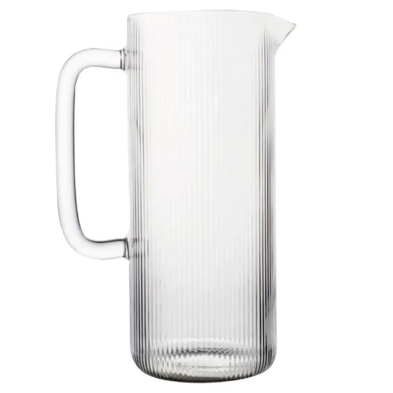 Glasskannen Saga tilhører den klassiske glassserien Saga fra Sagaform, bestående av vinglass, champagneglass, champagnekupéer, drikkeglass og karafler, som alle tar en naturlig plass i kjøkkenskapet. Med sine karakteristiske striper som følger alle deler av serien på en eller annen måte, skiller den seg ut, men smelter også inn. I denne muggen serverer vi alt fra vann til forfriskende fruktjuicer. Glasskannen Saga har et bredt håndtak som gjør den behagelig å bære.