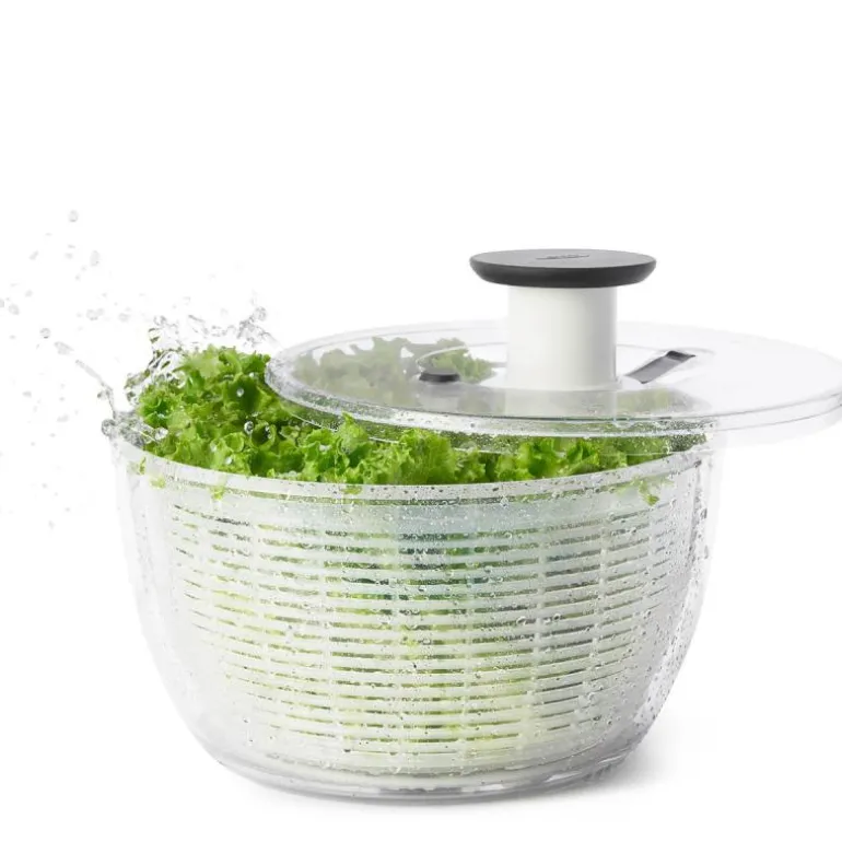 Stor salatslynge i moderne design. Slyngen settes i gang med et lett trykk på pumpeknappen på toppen og stoppes ved å trykke på bremseknappen ved siden av. En gummiring på undersiden sikrer at salatslyngen står helt fast på kjøkkenbenken mens den er i bruk. Salatslyngen er også velegnet til å oppbevare salat i kjøleskapet og skålen er samtidig en elegant serveringsskål.