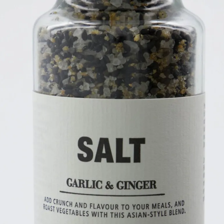 Salt hvitløk & ingefær 255 g fra Nicolas Vahé er en aromatisk krydderblanding som gir en spennende smak til supper, gryteretter og andre retter. Med en balansert kombinasjon av ingefær, svarte sesamfrø og et hint av hvitløk tilfører denne saltblandingen en eksotisk dybde med et asiatisk preg.
