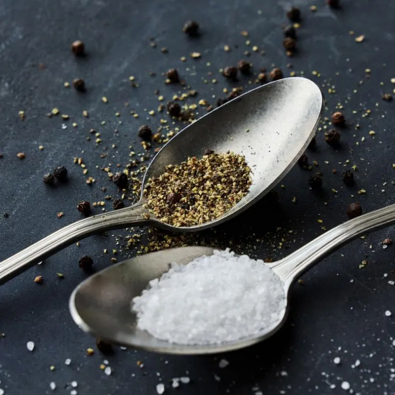 - økologisk/ekologisk sorte/svarta peberkorn/pepparkorn. // fransk havsalt.