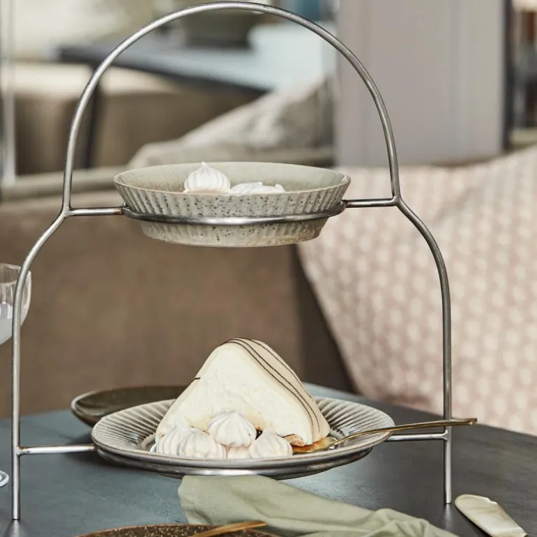 Sana tallerkenstativ silver finish, fra House Doctor. Dette 2-lags tallerkenstativet fra House Doctor er ideelt for en deilig afternoon tea eller til forskjellig konfekt. Sett din egen personlige vri på det klassiske designet med favoritt-tallerkenene og fyll på med små smørbrød og kaker. Tallerkenstativet er ideelt hvis du vil servere søndagsbrunsj på en ny måte eller faktisk bare hvis du vil unne deg selv og gjestene dine noe ekstra, uansett tid på døgnet.