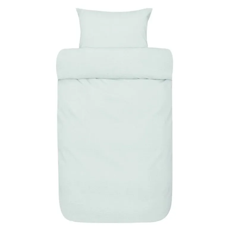 Dynetrekket har en praktisk glidelåslukking i bunnen, som gjør det enkelt å ta av og på, mens den kreppede strukturen gir en uformell, men stilren look uten behov for stryking. Settet inkluderer et dynetrekk i 220 cm lengde samt et matchende putetrekk på 50×70 cm, perfekt for å skape en komfortabel og avslappet atmosfære på soverommet.