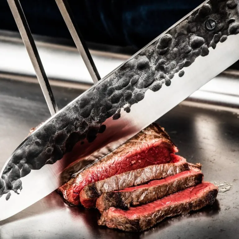 Kniven er laget av håndsmidd japansk 440C-stål med en hardhet på 58 Rockwell. Med en 2 mm tykkelse og 18-graders vinkel er den både skarp og slitesterk. Leveres i eksklusiv gaveeske med 10 års garanti.