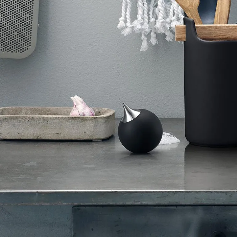 Et integrert lodd i bunnen sørger for at dispenseren alltid står stødig, uansett hvor den plasseres. Overflaten er lett å holde ren med en fuktig klut, og det tidløse designet passer inn i de fleste hjem.