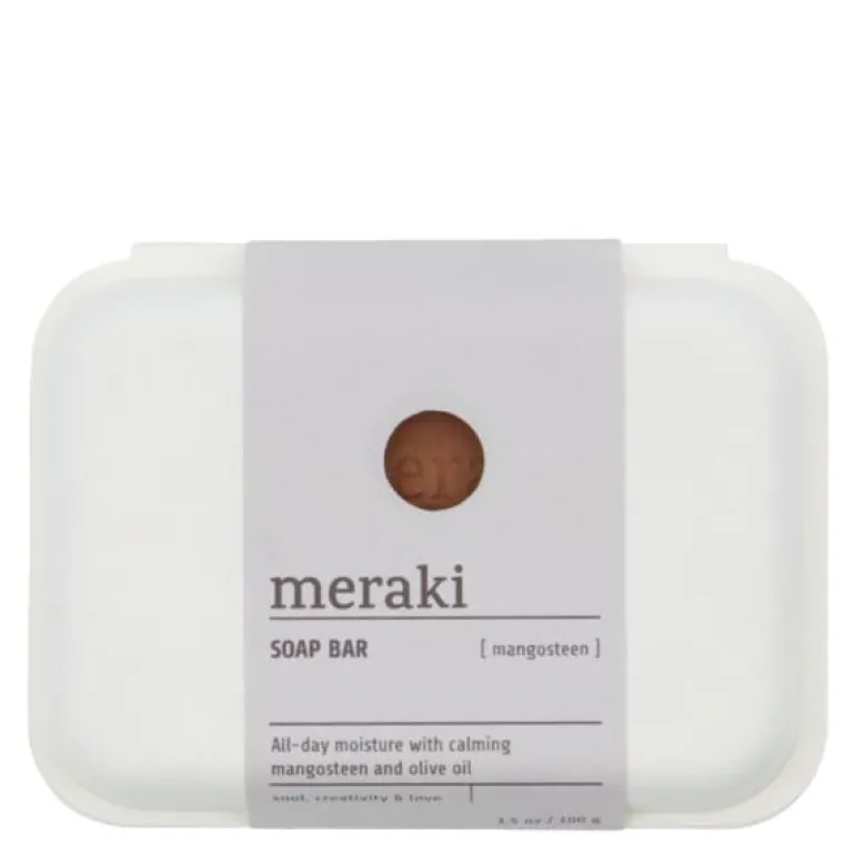 Såpestykket mangosteen fra Meraki er den perfekte løsningen for å holde hendene fuktet og beskyttet hele dagen. Denne solide såpen inneholder mangostan, en liten og eksotisk frukt rik på antioksidanter. Disse antioksidantene bidrar til å beskytte huden mot frie radikaler og har en beroligende effekt. Sammen med olivenolje sørger det for at huden din forblir myk og fuktet.