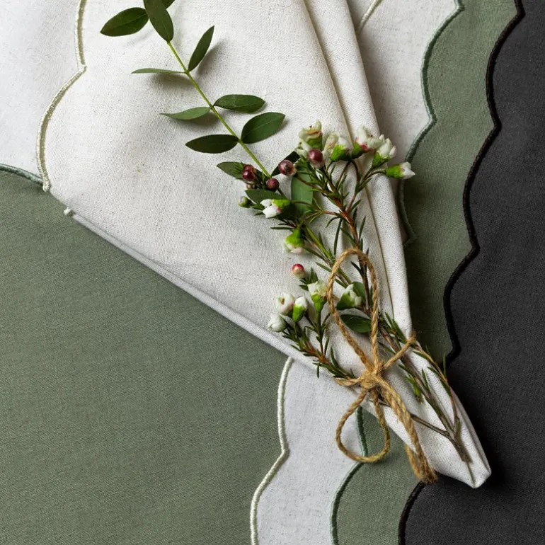 Scallopped tekstilservietter fra Ziczac er en flott detalj til ethvert dekket bord. Settet inneholder to servietter på 40×40 cm, laget av en behagelig lin- og bomullsblanding som gir en myk og luksuriøs følelse. Fargen er både moderne og allsidig, noe som gjør serviettene enkle å kombinere med ulike fargetoner og bordoppsett.
