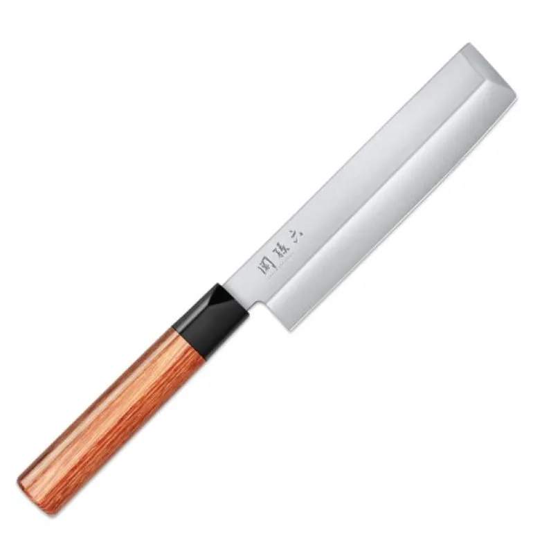 KAI SEKI Redwood Usuba (17cm) er en håndlaget japansk kjøkkenkniv med knivblad i robust rustfritt stål og håndtak av pakkawood. Designet kombinerer en minimalistisk grunnform med tradisjonell japansk estetikk. Navnet kommer fra bruken av rød pakkawood i håndtaket.