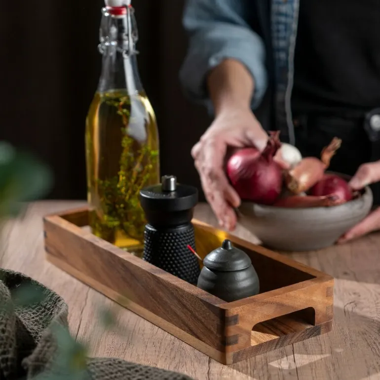 Zassenhaus serveringsbrikke i akasietre kombinerer funksjon og estetikk i et naturlig design. Med målene 32 x 12 x 4,5 cm er den ideell for alt fra tapas og fingermat til kaffe og kake. Den gjør seg også godt som organisert brett for baderomsartikler eller kjøkkenoljer.
