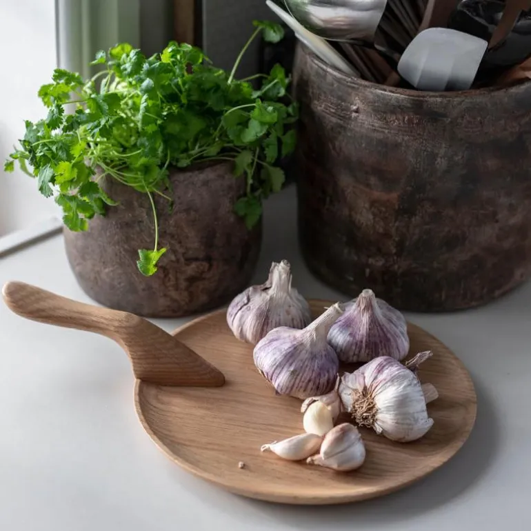 Elegant serveringsfat i eik fra Kay Bojesens Menageri-serie. Det har en diameter på 24,5 cm og har et flott organisk håndtak som ligger godt i hånden når du skal servere. Fatet samler alle delene i Menageri-serien og kan brukes som en “plat de ménage”. I tillegg kan fatet brukes som anretningsfat til f.eks. pålegg eller frukt, da det har fått en næringsmiddelgodkjent overflatebehandling som sikrer at treet ikke er mottakelig overfor fargesmittende matvarer. Du bør være oppmerksom på at fatet ikke er skjære- og ripebestandig.