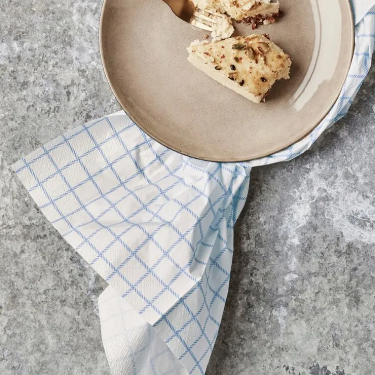 Pakke med 20 stk servietter 20×20 cm blå, fra Nicolas Vahé. Tilfør et snev av eleganse til borddekningen med dette sjarmerende blårutemønsteret. Disse papirserviettene er perfekte for å forbedre enhver måltidsopplevelse, enten det er uformelle piknik eller elegante middager.