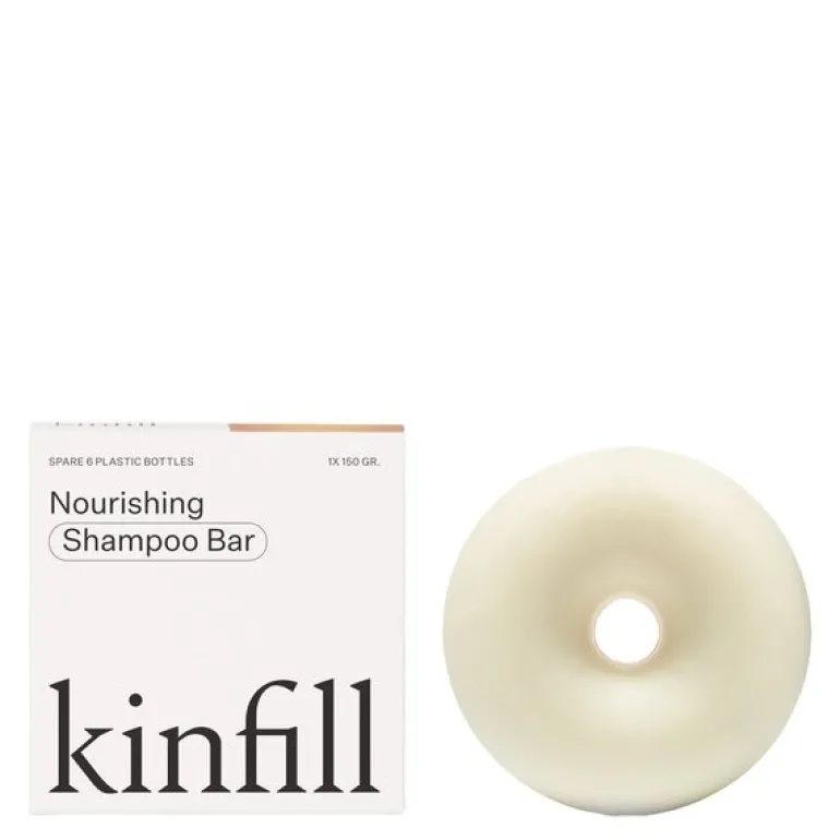 Shampoo bar 150g tonka butter fra Kinfill. Denne revitaliserende sjampobaren er beriket med de nærende egenskapene til sheasmør og arganolje, og renser og fukter håret og etterlater det mykt og skinnende. En deilig duft av vanilje, fresia, tonkabønne, helitorp og patchouli.