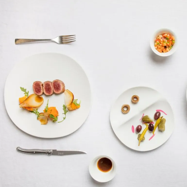 Stilren middagstallerken fra Cookplay. 27,5 x 28,5 cm i hvitt, glasert porselen