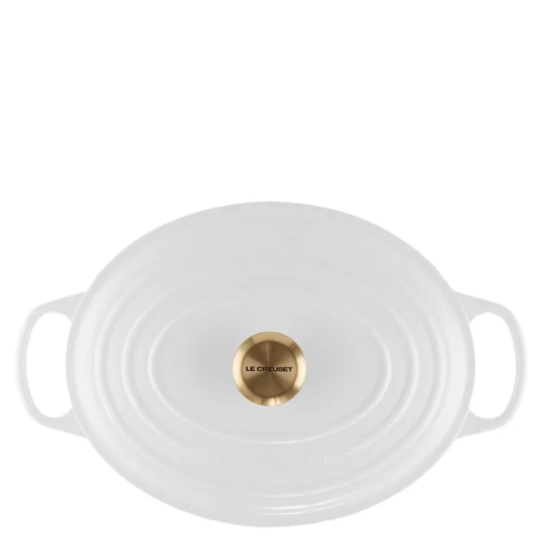 Signature oval støpejernsgryte 31 cm 6,3L white, fra Le Creuset. Den ovale støpejernsgryten fra Le Creuset er like allsidig som den runde klassikeren. Den er også stor nok til å romme et helt lammelår og smal nok til at du får plass til tilbehøret ved siden av i ovnen. Med denne basisgryten for alle kokker kan du skape imponerende retter som er proppfulle av smak, uansett hva som står på menyen. Støpejernsgryten er 31 cm og har en kapasitet på 6,3 liter.