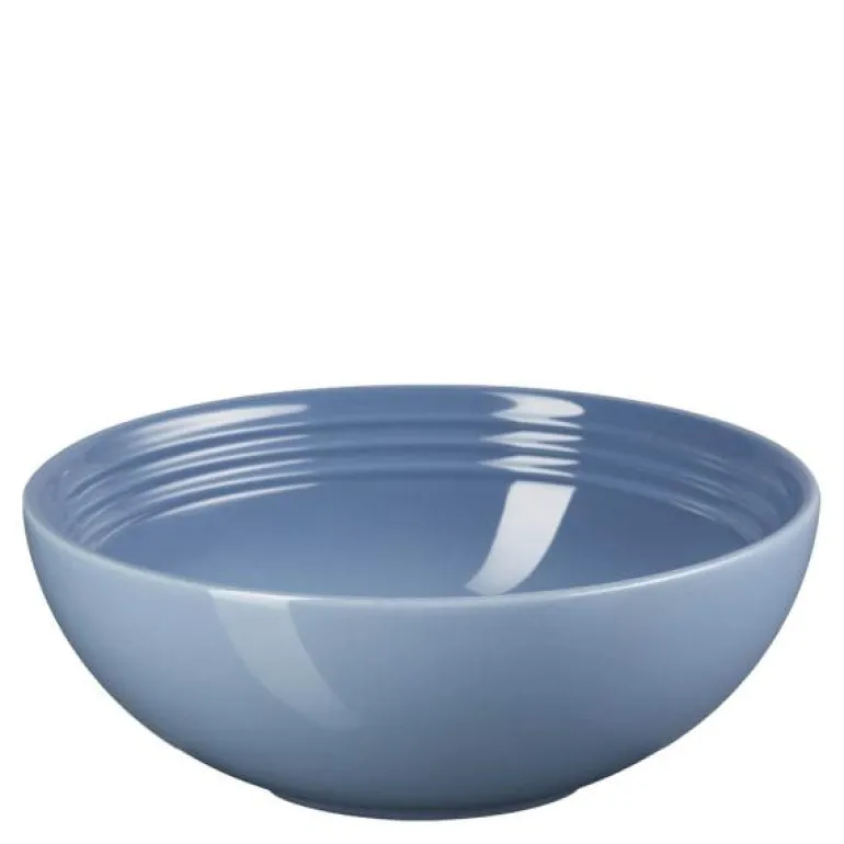 Serveringsskål chambray 24 cm fra Signature-serien til Le Creuset. Signature bringer klassisk design og flotte farger til middagsbordet. Med et klassisk design til ethvert måltid og enhver anledning bringer den nye tallerkenserien Signature fra Le Creuset flotte farger og stil til middagsbordet. Den store, runde serveringskålen i Signature-serien passer godt til servering og anretning av større salater, poteter m.m. og utgjør et flott midtpunkt på bordet. Skålen har det ikoniske Le Creuset-designet med de tre signaturringene, rene og elegante linjer og en bred, praktisk kant.