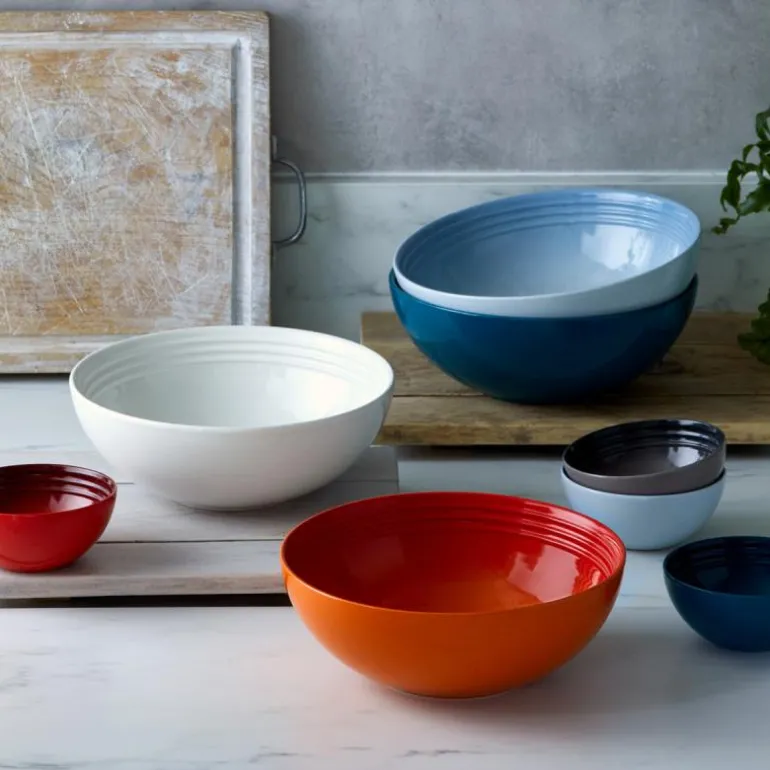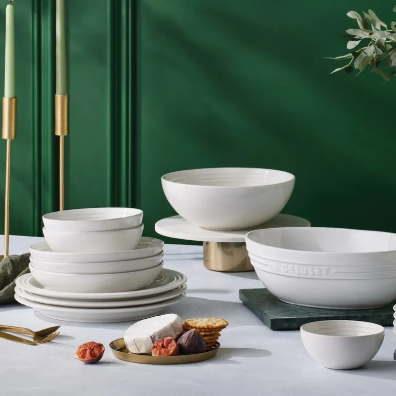 Signature serveringsskål 24 cm white, Le Creuset. Denne serveringsskålen er den perfekte matchen for middagssettet i stentøy, og den setter standarden på bordet ditt. Den er utsmykket med vårt ikoniske design med tre ringer – et nikk til de som kan det. Den passer også flott med de andre stentøyskålene våre. Bland og match en rekke farger, eller velg favoritten din og gå all in.