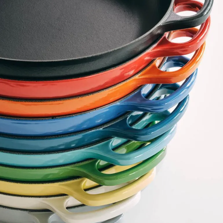 Emaljen på innsiden utvikler en naturlig patina som fungerer som en non-stick overflate. Overflaten frigjør også maten enkelt, reduserer behovet for ekstra krydder. Rengjøres kun med vann.