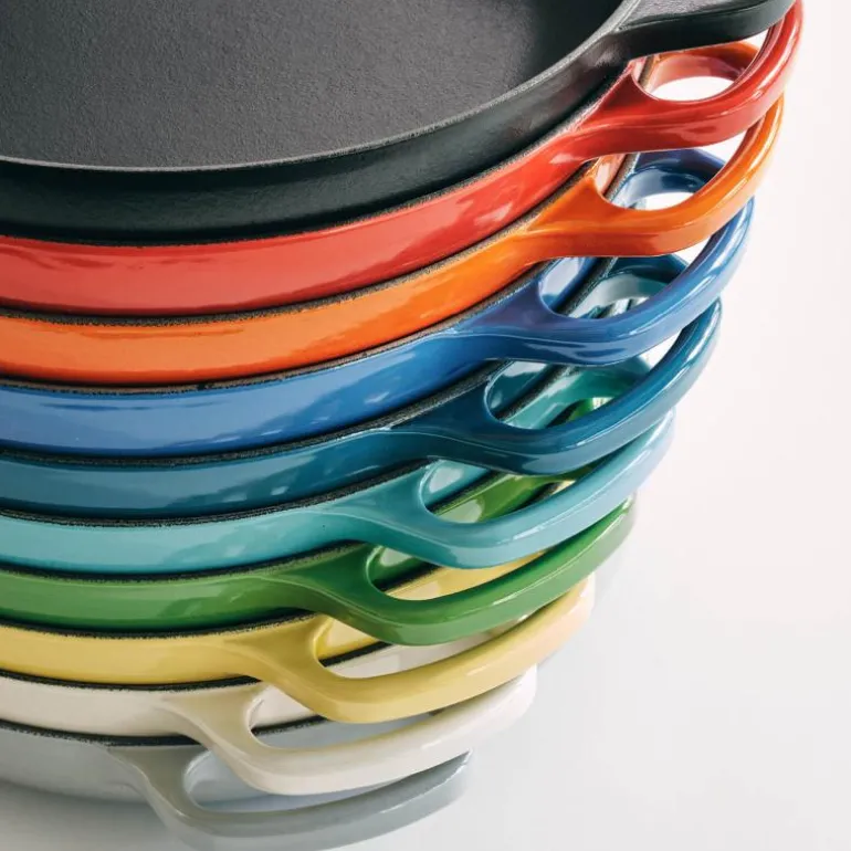 – Eldes med stil: Den innvendige emaljen utvikler en naturlig patina som fungerer som en non-stick-overflate. Finishen har også gode egenskaper for å slippe maten uten at det kreves like mye krydder. Vask produktet kun med vann slik at patinaen kan utvikles.
