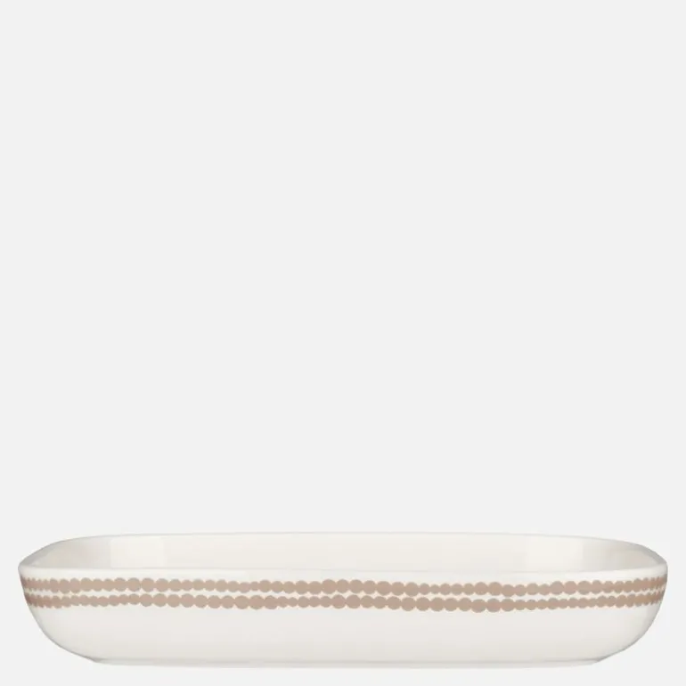 Dette Oiva-fatet laget av hvitt steintøy er dekorert på utsiden med Räsymatto-mønsteret. Räsymatto-mønsteret (fillematte) er inspirert av tildelingen der bærekraftig livsstil og gleden ved å jobbe med hendene står i fokus. Den koloniale tomten med sine bed av grønnsaker og blomster representerer det beste av urban natur hvor filleteppet på gulvet i hytten forteller sin egen historie.