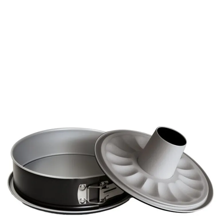 Silver Elegance springform på 26 cm fra Guardini kommer med to utskiftbare bunnplater, en glatt og en med senterkjegle, som gir deg flere muligheter i kjøkkenet. Med en moderne to-lags non-stick belegg som er forsterket med keramiske partikler, blir både baking og rengjøring enkel og problemfri.