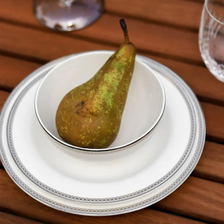 Dessertskål 12,6 cm i serviset Silver Paisley fra Royal Porcelain. Klassisk og tidløs, elegant og romantisk. Silver Paisley-serien fra Royal Porcelain kombinerer maskuline, stramme linjer med et delikat, romantisk mønster. Et design som gjør Silver Paisley like anvendelig som det er vakkert. Silver Paisley er festserviset du aldri blir lei av å ta frem, og er en serie du kan samle på hele livet. Hvorfor ikke sette dette serviset på ønskelisten til bryllupet?Serien er produsert av Royal Porcelain, en av Norges største merkevarer innen serviser. Silver Paisley er laget av benporselen, som er den aller fineste type porselen. Serien tåler oppvaskmaskin, men som med alle serviser med sølv eller gullkant bør serviset ikke vaskes med temperatur over 50 grader og det bør brukes halv dose med vaskemiddel. Fås kun hos Tilbords. Silver Paisley er et komplett festservise som inneholder alt du trenger til de ekstra spesielle anledningene. Det rene, tidløse designet gjør at serviset er like aktuell til alle årstider og kan kombineres med bordpynt i dine favorittfarger. Serien inneholder tallerkener i ulike størrelser – til forrett, hovedrett og dessert – serveringsfat i flere størrelser, suppeterrin, sausenebb og salatbolle. I tillegg finner du selvsagt et komplett kaffeservise.