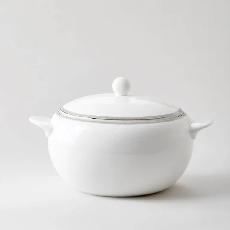 Terrin 3 liter i serviset Silver Paisley fra Royal Porcelain. Klassisk og tidløs, elegant og romantisk. Silver Paisley-serien fra Royal Porcelain kombinerer maskuline, stramme linjer med et delikat, romantisk mønster. Et design som gjør Silver Paisley like anvendelig som det er vakkert. Silver Paisley er festserviset du aldri blir lei av å ta frem, og er en serie du kan samle på hele livet. Hvorfor ikke sette dette serviset på ønskelisten til bryllupet?