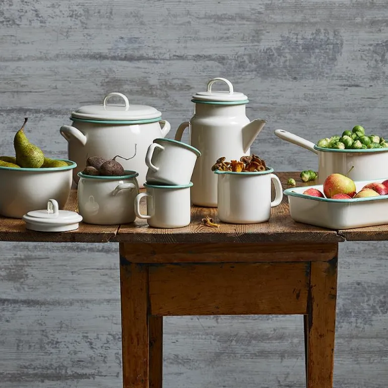 Den lille skålen fra Kockums Jernverk er perfekt til frokostgrøten, desserten eller som tilbehørsskål til matlaging og servering. Den er tilgjengelig i tre tidløse fargekombinasjoner: krem med grønn kant, hvit med blå kant og den nye varianten hvit med grå underside.