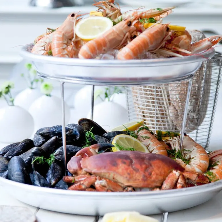 Dette skalldyrsfatet på 30 cm og 2,2 liter er ideelt for å servere alt fra reker til krabber på en elegant måte. Laget av sterkt aluminium, tåler det daglig bruk og er enkelt å holde rent.