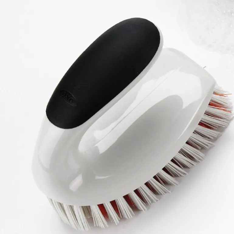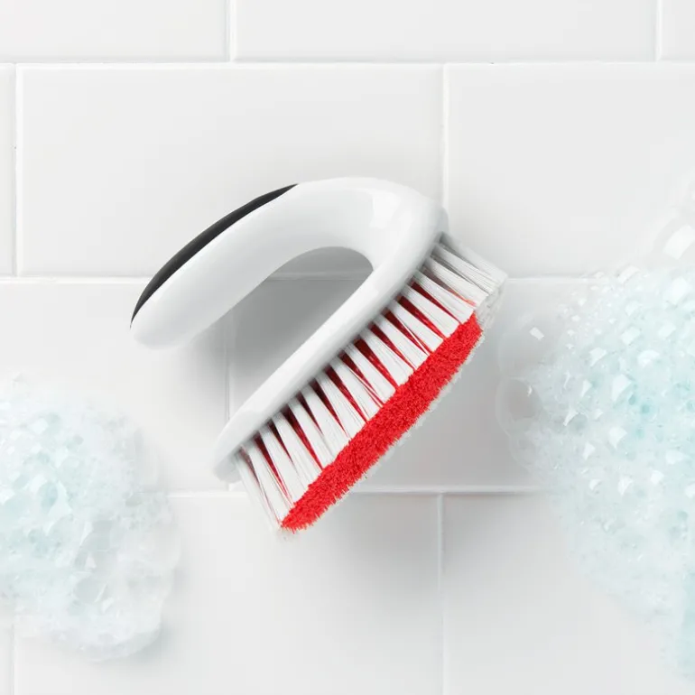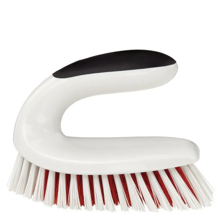 OXO skrubbebørste på 12,5 cm i svart og hvit er perfekt for å fjerne mugg, såperester og andre urenheter. De stive bustene langs kanten håndterer gjenstridige flekker, mens den mykere busten i midten etterlater overflaten skinnende ren.