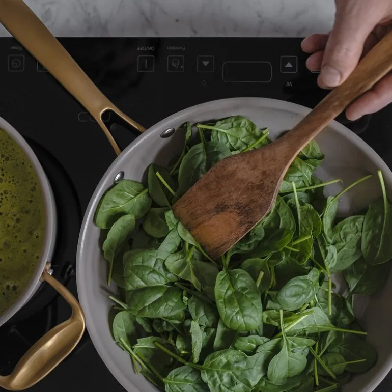 - Vi anbefaler bruk av redskaper i tre eller plast. Stålredskaper vil skade belegget. Rengjøres for hånd.