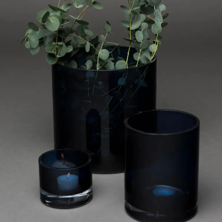 SKYLINE BLUE – En vidunderlig farge i den populære serien SKYLINE. SKYLINE ble et naturlig navn etter en reise til Shanghai. Der satt Halvor Bakke i 43.etasje og så ut over byen og ble fascinert av alle lysene. Han ga serien SKYLINE et stramt, rent og maskulint uttrykk. Som majestetiske skyskrapere i kontrast mot klar himmel, en illusjon av storbyens estetikk, skapte han konturene om til et trendy og sofistikert interiør.SKYLINE BLUE består av tre lykter i en dyp blåfarge. Str. 150 mm. Høyde 15 cm, bredde 12 cm. Tåler oppvaskmaskin.